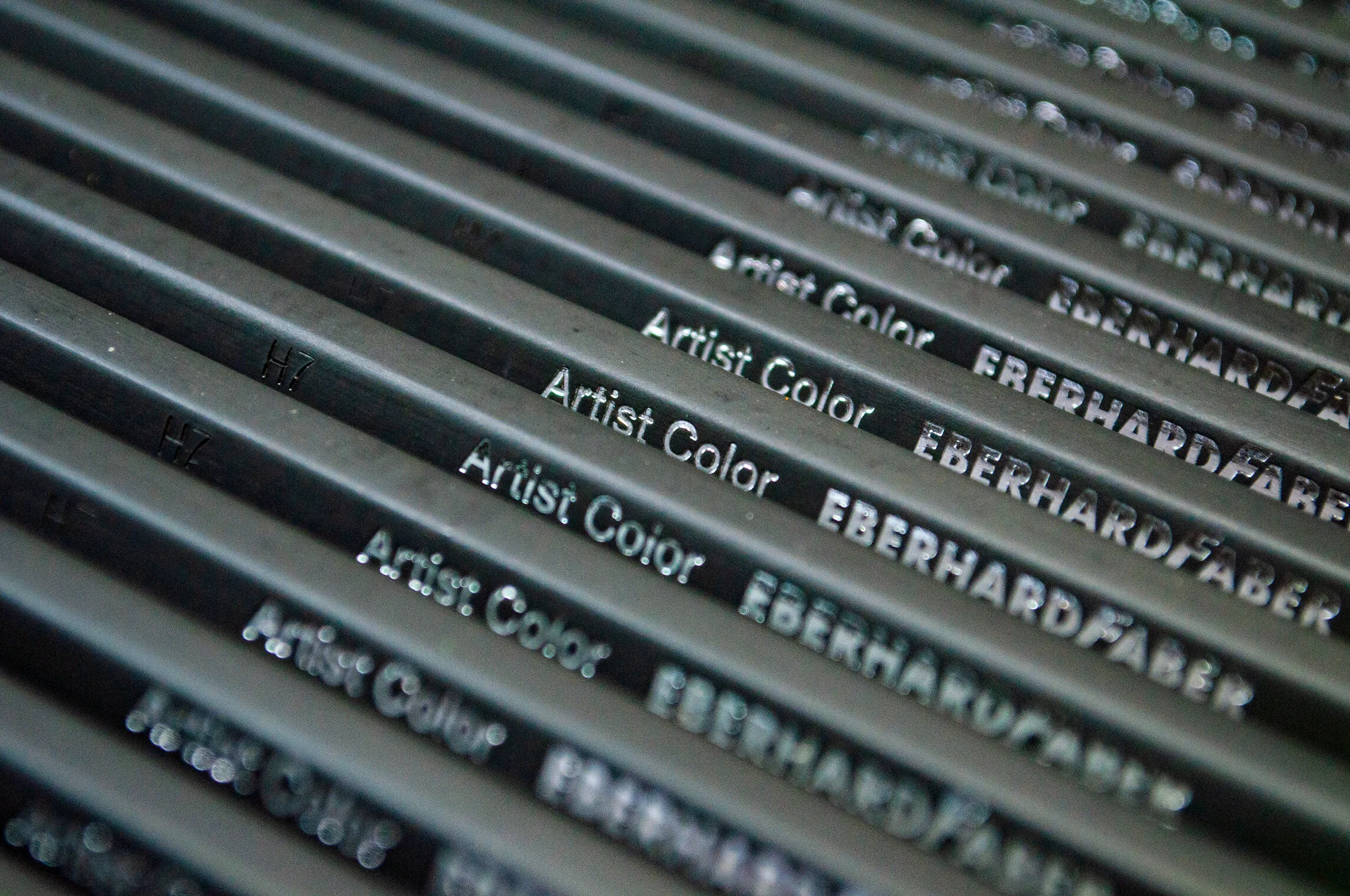 Unfortunately the barrel is incredibly sparse regarding information about the pencil. The barrel is a dark gunmetal grey with an inch long pigment identifier. The only information displayed on the barrel in silver leaf is “Artist Color” closely followed by the company name “Eberhard Faber”.