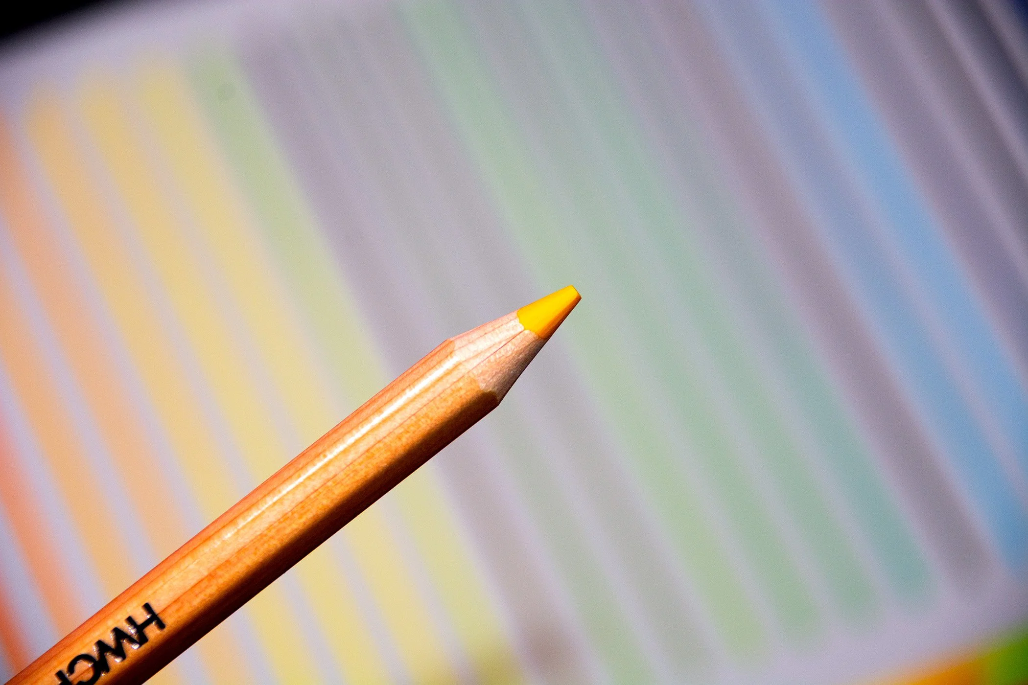 The Holbein Artist Watercolor pencils are hexagonal in shape, an excellent idea given how fragile watercolor pencil cores are in general. Holbein say the core is 3.8mm but my instrument for measurement shows the core a little thicker at 4 to 4.2mm, nicely encased in a beautiful 7.4mm barrel. Again Holbein claim the barrel to be 7.9mm but my instruments measure the barrel slightly smaller. At the end of the day we are only point millimetres of a difference. The main body of the pencils are varnished plain wood, giving the pencils a sophisticated artistic appearance, a made up term by me I know, but the best one that fits these beautiful Holbein pencils.