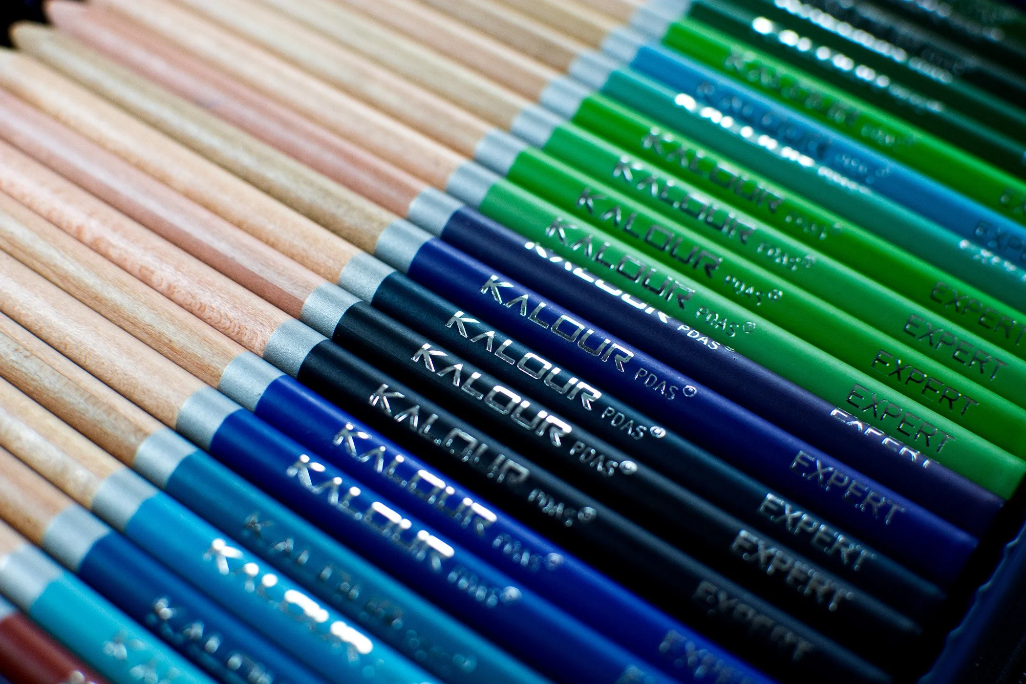 The core of the Kalour Colored Pencils is a generous 4mm, encased by a well weighted, round 7.9mm barrel. Each barrel is two tone in nature, with the lower half sporting a natural wood appearance and the entire upper half dedicated to the pigment identification, this is neatly separated with a small silver band on every pencil.