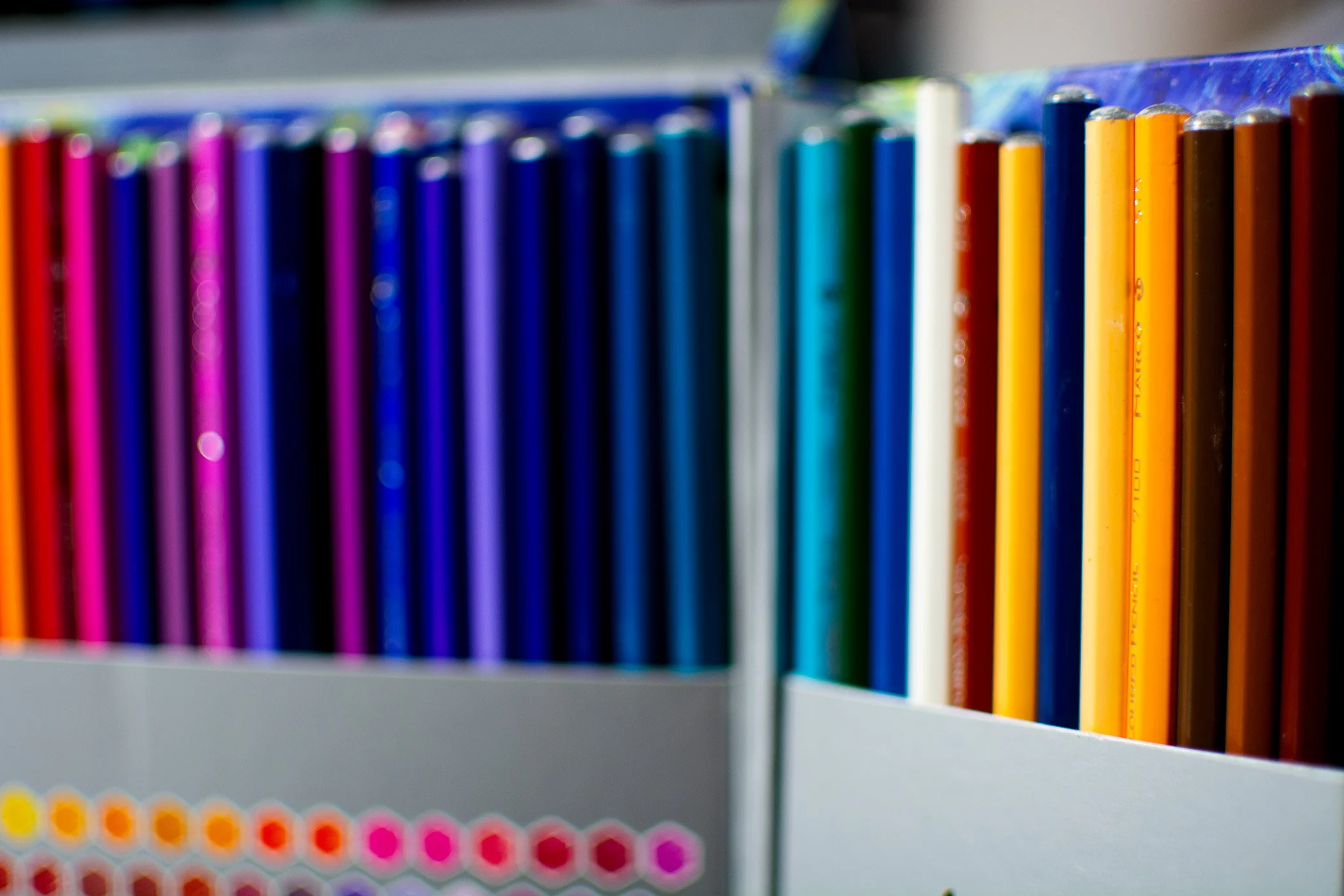 This was the option I took, but even trying to find each subsequent number in a set of 100 took valuable time in an otherwise incredibly time consuming practice. Normally colored pencil sets start with the white, yellow, orange, reds, pinks etc and finish with the Black. However in this set, 570 was the number correlating to the black and the remaining 30 colors could have easily been placed among the previous count. It was just unnecessary and time consuming and I wish companies would understand their market a little better, knowing that us artists have method in our madness.