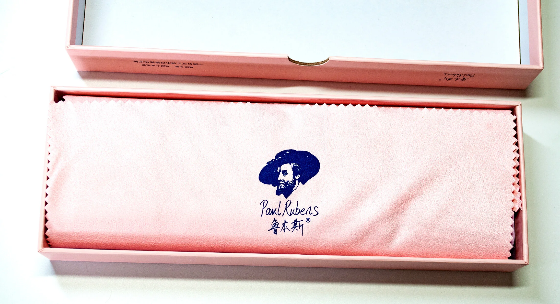 On removing the box lid you are presented with the Paul Rubens Logo, printed on a pink microfibre cloth, a simple but effective touch. They could have just dumped a small cloth into the box, but they took the time and effort to add the extra touches, the detail, adding the Paul Rubens Logo to the cloth.