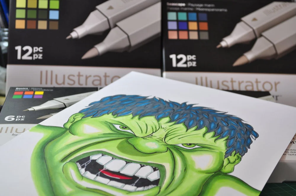 The ink flow of the markers from the brush nib is just perfect, there is no streaking and only a constant flow of ink, making the blending process such an easy process. As you can see in this illustration I completed of Marvels, The Hulk, the blending is seamless and the colours are gorgeous.