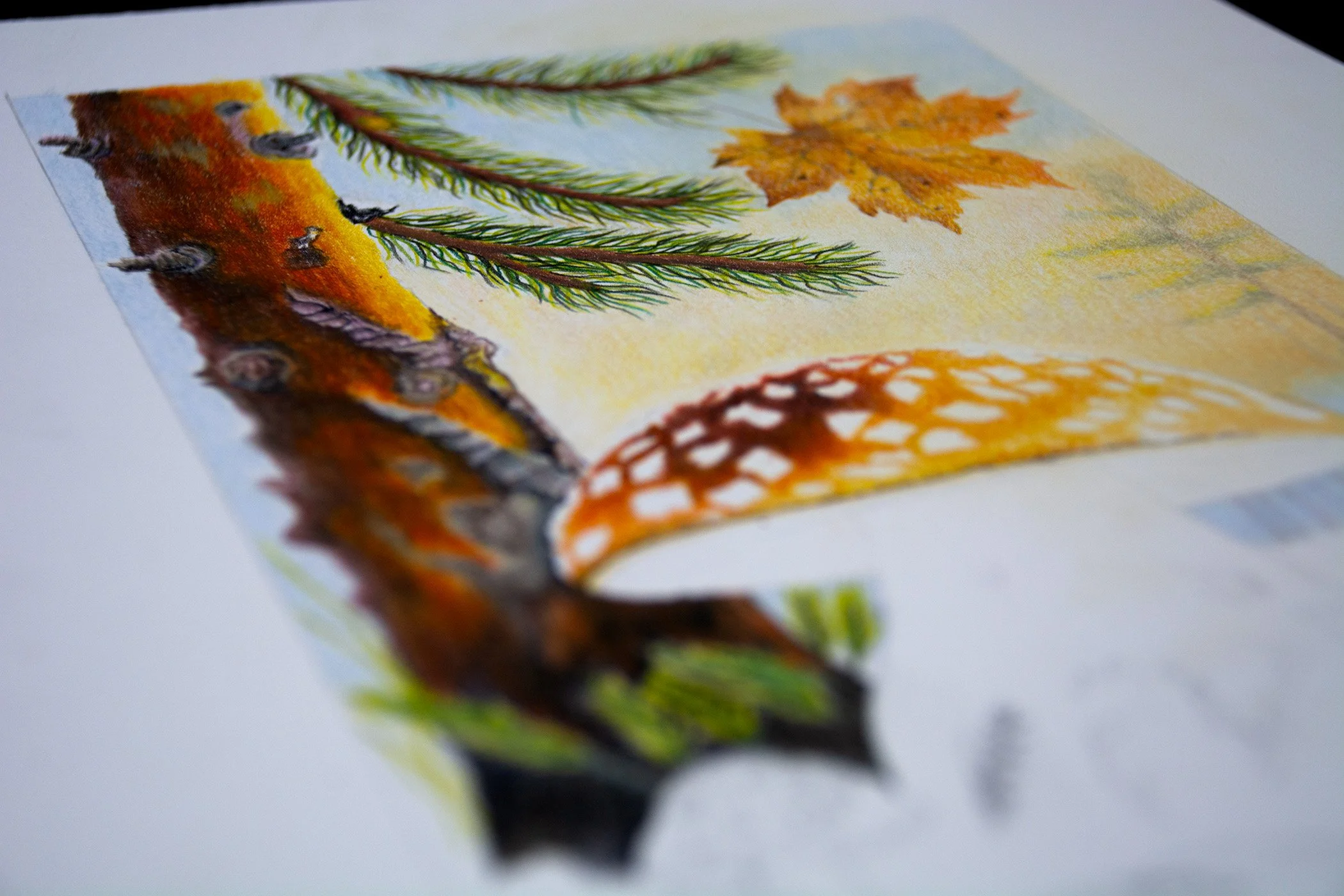 The artwork was created using mostly the new colors from the Derwent Drawing range, I wanted to try and showcase as many as the new colors as I could. Throughout my reviews I like to try and demonstrate the pencils on as many different paper surfaces as possible, the artwork was created on the Derwent Lightfast Paper, a truly amazing surface for colored pencils.