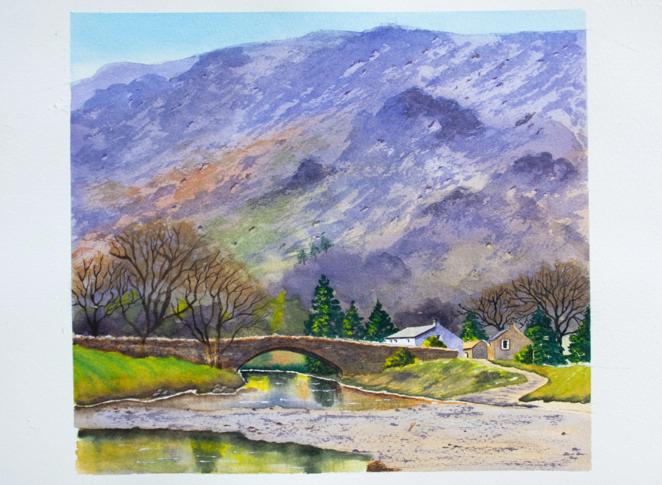 The location of the painting is Grange in the Lake District, it is a place that my wife and I used to take all three of our children on holiday. The actual location is so special to us as a family and so it was a really important painting, which I felt totally confidence in using the Etchr Watercolour Paper Block for.